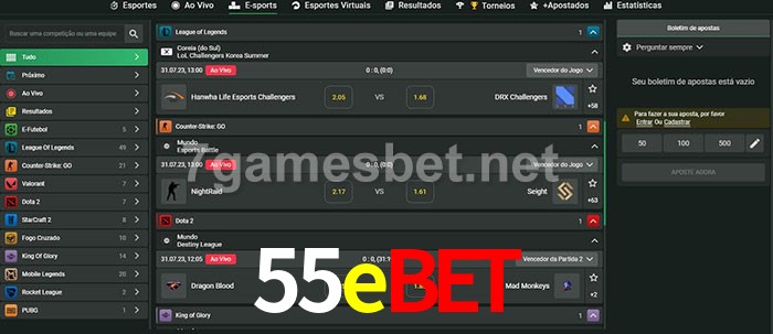 O 55ebet oferece uma grande seleção de opções de apostas em e-sports com probabilidades competitivas